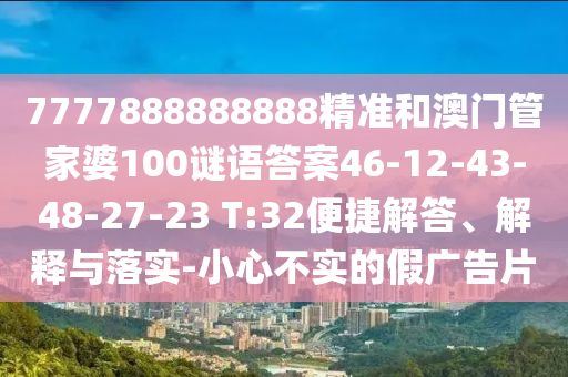 7777888888888精準和澳門管家婆100謎語答案46-12-43-48-27-23 T:32便捷解答、解釋與落實-小心不實的假廣告片