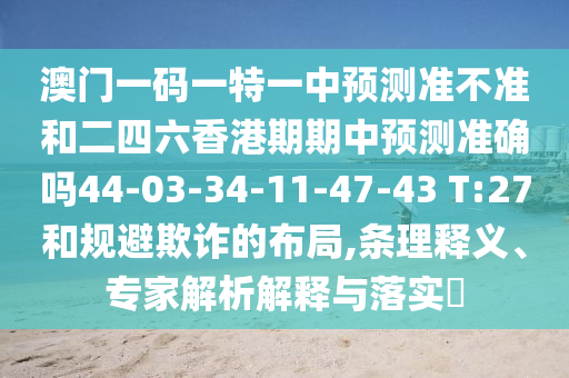 澳門一碼一特一中預測準不準和二四六香港期期中預測準確嗎44-03-34-11-47-43 T:27和規避欺詐的布局,條理釋義、專家解析解釋與落實?