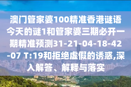 澳門管家婆100精準香港謎語今天的謎1和管家婆三期必開一期精準預測31-21-04-18-42-07 T:19和拒絕虛假的誘惑,深入解答、解釋與落實