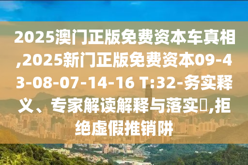 2025澳門正版免費資本車真相,2025新門正版免費資本09-43-08-07-14-16 T:32的務實釋義、專家解讀解釋與落實?