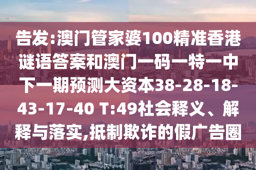 告發:澳門管家婆100精準香港謎語答案和澳門一碼一特一中下一期預測大資本38-28-18-43-17-40 T:49社會釋義、解釋與落實,抵制欺詐的假廣告圈
