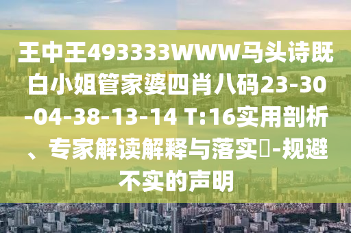 王中王493333WWW馬頭詩既白小姐管家婆四肖八碼23-30-04-38-13-14 T:16實用剖析、專家解讀解釋與落實?-規避不實的聲明