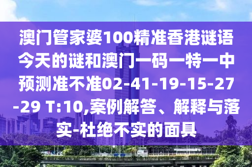 澳門管家婆100精準香港謎語今天的謎和澳門一碼一特一中預測準不準02-41-19-15-27-29 T:10,案例解答、解釋與落實-杜絕不實的面具