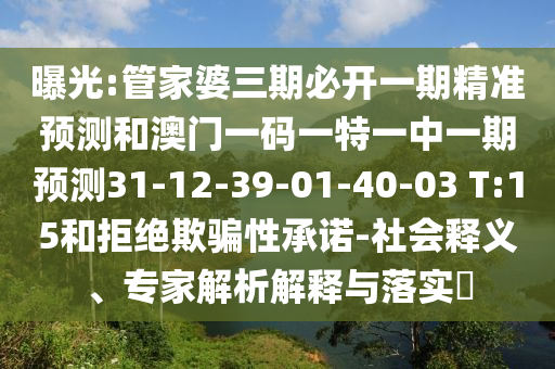 管家婆三期必開一期精準預測和澳門一碼一特一中一期預測31-12-39-01-40-03 T:15的社會釋義、專家解析解釋與落實?