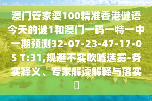 澳門管家婆100精準香港謎語今天的謎1和澳門一碼一特一中一期預測32-07-23-47-17-05 T:31,規避不實吹噓迷霧-務實釋義、專家解讀解釋與落實?