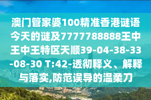 澳門管家婆100精準香港謎語今天的謎及7777788888王中王中王特區天順39-04-38-33-08-30 T:42-透徹釋義、解釋與落實,防范誤導的溫柔刀