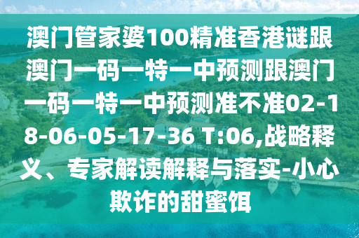 澳門管家婆100精準香港謎跟澳門一碼一特一中預測跟澳門一碼一特一中預測準不準02-18-06-05-17-36 T:06,戰略釋義、專家解讀解釋與落實-小心欺詐的甜蜜餌