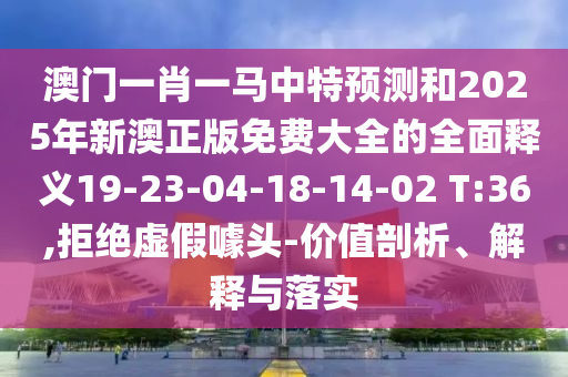 澳門一肖一馬中特預測和2025年新澳正版免費大全的全面釋義19-23-04-18-14-02 T:36,拒絕虛假噱頭-價值剖析、解釋與落實