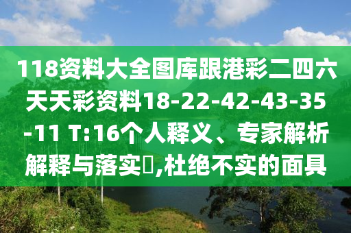 118資料大全圖庫跟港彩二四六天天彩資料18-22-42-43-35-11 T:16的個人釋義、專家解析解釋與落實?
