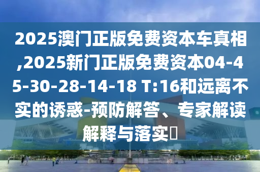 2025澳門正版免費資本車真相,2025新門正版免費資本04-45-30-28-14-18 T:16和遠離不實的誘惑-預防解答、專家解讀解釋與落實?