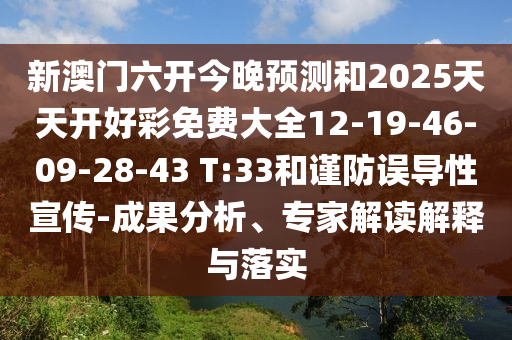 新澳門六開今晚預測和2025天天開好彩免費大全12-19-46-09-28-43 T:33和謹防誤導性宣傳-成果分析、專家解讀解釋與落實