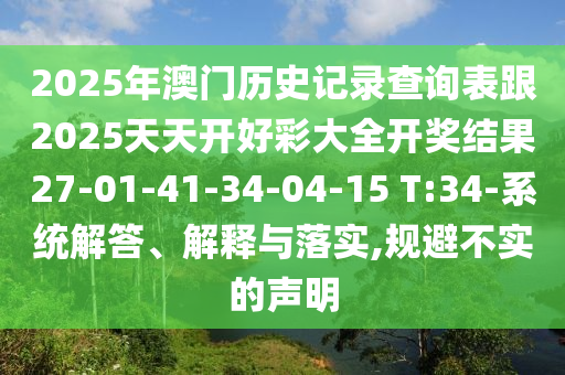 2025年澳門歷史記錄查詢表跟2025天天開好彩大全開獎結果27-01-41-34-04-15 T:34-系統解答、解釋與落實,規避不實的聲明