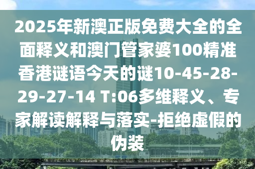 2025年新澳正版免費大全的全面釋義和澳門管家婆100精準香港謎語今天的謎10-45-28-29-27-14 T:06多維釋義、專家解讀解釋與落實-拒絕虛假的偽裝