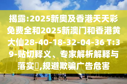 揭露:2025新奧及香港天天彩免費全和2025新澳門和香港黃大仙28-40-18-32-04-36 T:39-貼切釋義、專家解析解釋與落實?,規避欺騙廣告危害