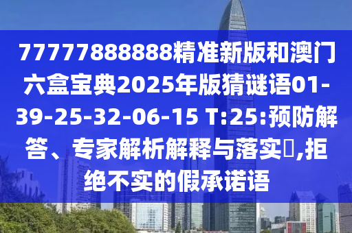 77777888888精準新版和澳門六盒寶典2025年版猜謎語01-39-25-32-06-15 T:25:預防解答、專家解析解釋與落實?,拒絕不實的假承諾語