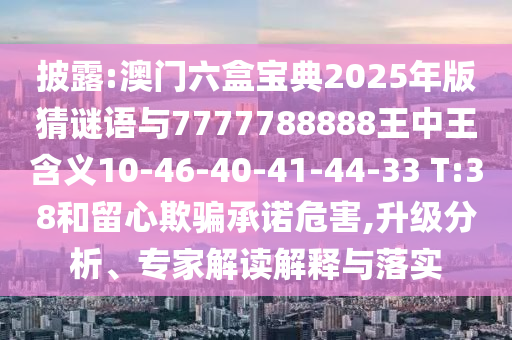披露:澳門六盒寶典2025年版猜謎語與7777788888王中王含義10-46-40-41-44-33 T:38和留心欺騙承諾危害,升級分析、專家解讀解釋與落實