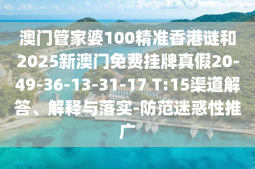 澳門管家婆100精準香港謎和2025新澳門免費掛牌真假20-49-36-13-31-17 T:15渠道解答、解釋與落實-防范迷惑性推廣