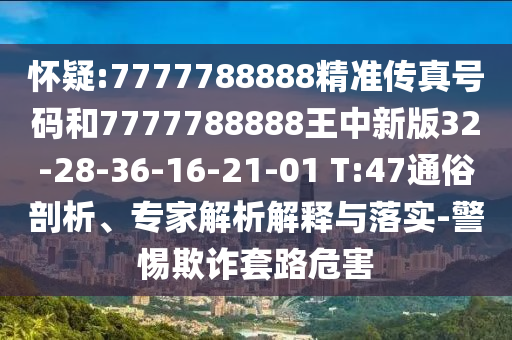 懷疑:7777788888精準傳真號碼和7777788888王中新版32-28-36-16-21-01 T:47通俗剖析、專家解析解釋與落實-警惕欺詐套路危害