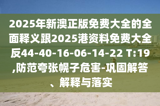 2025年新澳正版免費大全的全面釋義跟2025港資料免費大全反44-40-16-06-14-22 T:19的鞏固解答、解釋與落實