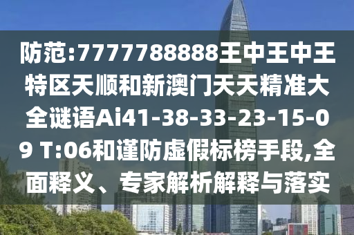 防范:7777788888王中王中王特區天順和新澳門天天精準大全謎語Ai41-38-33-23-15-09 T:06和謹防虛假標榜手段,全面釋義、專家解析解釋與落實