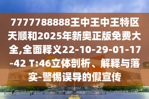7777788888王中王中王特區天順和2025年新奧正版免費大全,全面釋義22-10-29-01-17-42 T:46立體剖析、解釋與落實-警惕誤導的假宣傳