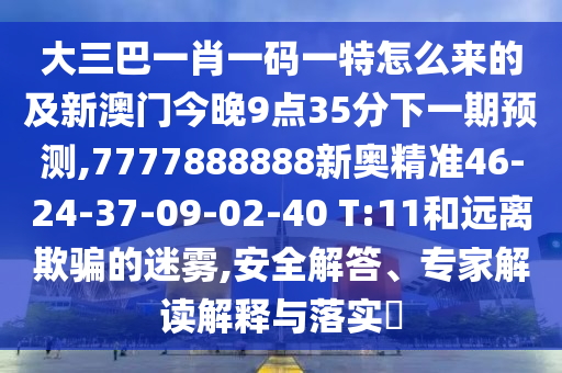 大三巴一肖一碼一特怎么來的及新澳門今晚9點35分下一期預測,7777888888新奧精準46-24-37-09-02-40 T:11和遠離欺騙的迷霧,安全解答、專家解讀解釋與落實?