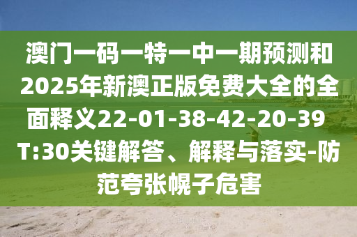 澳門一碼一特一中一期預測和2025年新澳正版免費大全的全面釋義22-01-38-42-20-39 T:30關鍵解答、解釋與落實-防范夸張幌子危害
