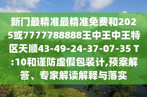 新門最精準最精準免費和2025或7777788888王中王中王特區天順43-49-24-37-07-35 T:10的預案解答、專家解讀解釋與落實