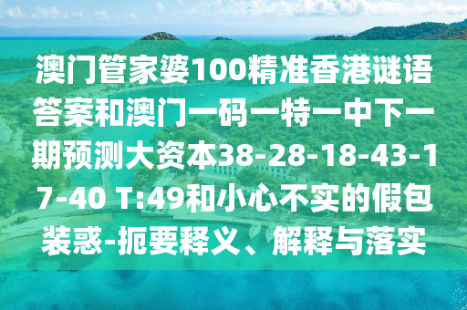 澳門管家婆100精準香港謎語答案和澳門一碼一特一中下一期預測大資本38-28-18-43-17-40 T:49和小心不實的假包裝惑-扼要釋義、解釋與落實