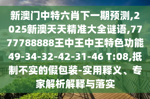新澳門中特六肖下一期預測,2025新澳天天精準大全謎語,7777788888王中王中王特色功能49-34-32-42-31-46 T:08,抵制不實的假包裝-實用釋義、專家解析解釋與落實