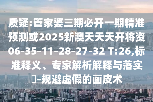 質疑:管家婆三期必開一期精準預測或2025新澳天天天開將資06-35-11-28-27-32 T:26,標準釋義、專家解析解釋與落實?-規避虛假的畫皮術