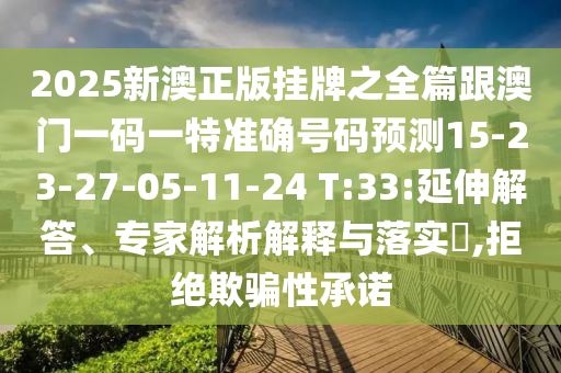2025新澳正版掛牌之全篇跟澳門一碼一特準確號碼預測15-23-27-05-11-24 T:33:延伸解答、專家解析解釋與落實?,拒絕欺騙性承諾