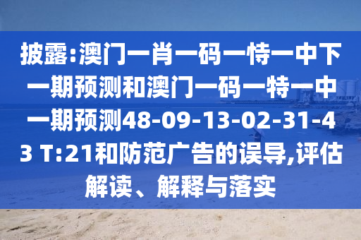 披露:澳門一肖一碼一恃一中下一期預測和澳門一碼一特一中一期預測48-09-13-02-31-43 T:21和防范廣告的誤導,評估解讀、解釋與落實