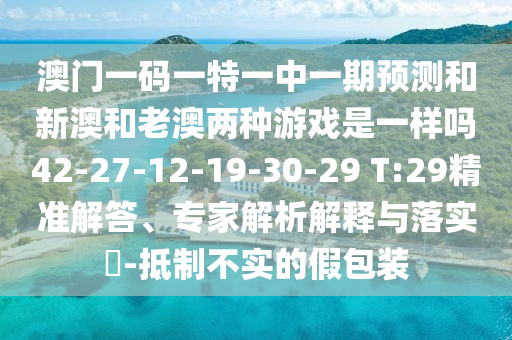 澳門一碼一特一中一期預測和新澳和老澳兩種游戲是一樣嗎42-27-12-19-30-29 T:29精準解答、專家解析解釋與落實?-抵制不實的假包裝