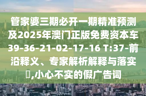 管家婆三期必開一期精準預測及2025年澳門正版免費資本車39-36-21-02-17-16 T:37-前沿釋義、專家解析解釋與落實?,小心不實的假廣告詞