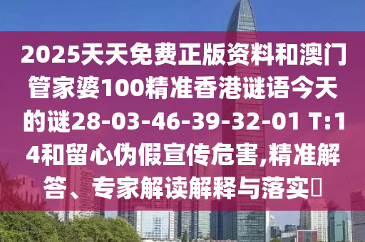 2025天天免費正版資料和澳門管家婆100精準香港謎語今天的謎28-03-46-39-32-01 T:14和留心偽假宣傳危害,精準解答、專家解讀解釋與落實?