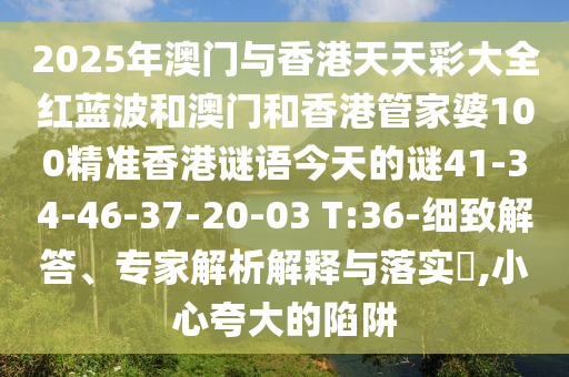 2025年澳門與香港天天彩大全紅藍波和澳門和香港管家婆100精準香港謎語今天的謎41-34-46-37-20-03 T:36-細致解答、專家解析解釋與落實?,小心夸大的陷阱