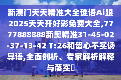 新澳門天天精準大全謎語Ai跟2025天天開好彩免費大全,7777888888新奧精準31-45-02-37-13-42 T:26和留心不實誘導語,全面剖析、專家解析解釋與落實?