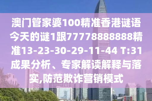 澳門管家婆100精準香港謎語今天的謎1跟77778888888精準13-23-30-29-11-44 T:31的成果分析、專家解讀解釋與落實