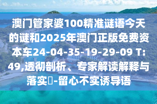 澳門管家婆100精準謎語今天的謎和2025年澳門正版免費資本車24-04-35-19-29-09 T:49,透徹剖析、專家解讀解釋與落實?-留心不實誘導語