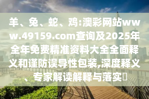 羊、兔、蛇、雞:澳彩網站www.49159.соm查詢及2025年全年免費精準資料大全全面釋義和謹防誤導性包裝,深度釋義、專家解讀解釋與落實?