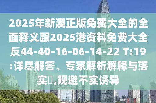 2025年新澳正版免費大全的全面釋義跟2025港資料免費大全反44-40-16-06-14-22 T:19:詳盡解答、專家解析解釋與落實?,規避不實誘導