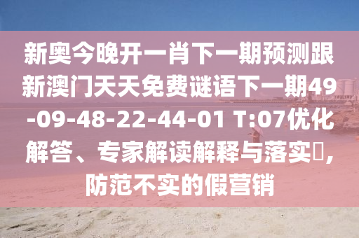 新奧今晚開一肖下一期預測跟新澳門天天免費謎語下一期49-09-48-22-44-01 T:07優化解答、專家解讀解釋與落實?,防范不實的假營銷