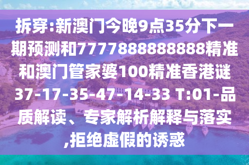 拆穿:新澳門今晚9點35分下一期預測和7777888888888精準和澳門管家婆100精準香港謎37-17-35-47-14-33 T:01-品質解讀、專家解析解釋與落實,拒絕虛假的誘惑