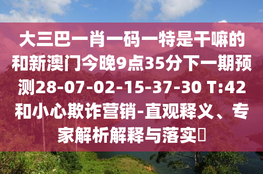 大三巴一肖一碼一特是干嘛的和新澳門今晚9點35分下一期預測28-07-02-15-37-30 T:42和小心欺詐營銷-直觀釋義、專家解析解釋與落實?