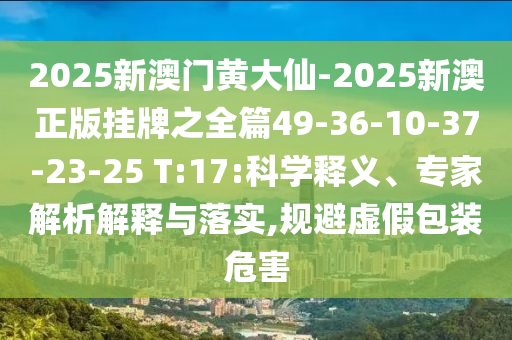 2025新澳門黃大仙-2025新澳正版掛牌之全篇49-36-10-37-23-25 T:17:科學釋義、專家解析解釋與落實,規避虛假包裝危害