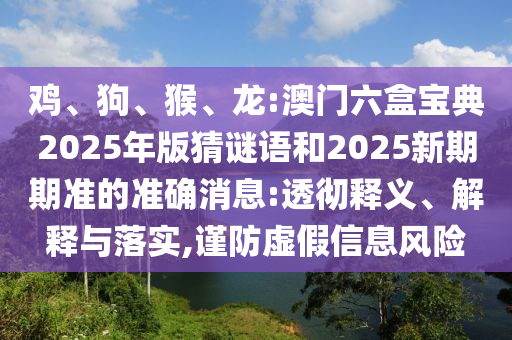 雞、狗、猴、龍:澳門六盒寶典2025年版猜謎語和2025新期期準的準確消息:透徹釋義、解釋與落實,謹防虛假信息風險