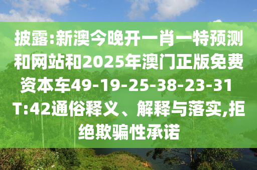 披露:新澳今晚開一肖一特預測和網站和2025年澳門正版免費資本車49-19-25-38-23-31 T:42通俗釋義、解釋與落實,拒絕欺騙性承諾