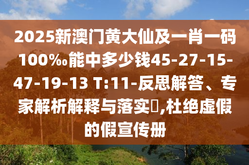 2025新澳門黃大仙及一肖一碼100‰能中多少錢45-27-15-47-19-13 T:11-反思解答、專家解析解釋與落實?,杜絕虛假的假宣傳冊