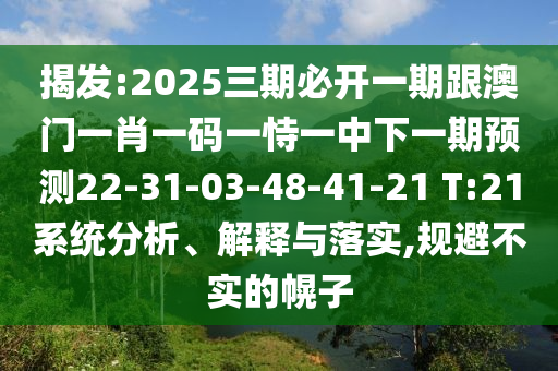 揭發:2025三期必開一期跟澳門一肖一碼一恃一中下一期預測22-31-03-48-41-21 T:21系統分析、解釋與落實,規避不實的幌子
